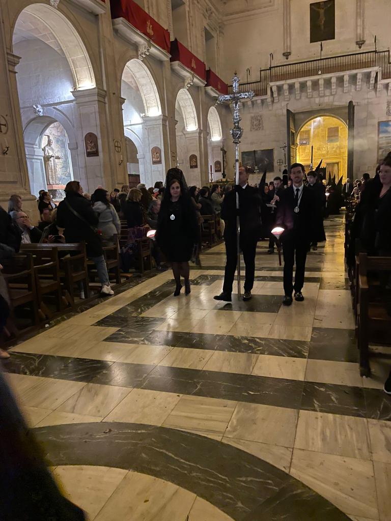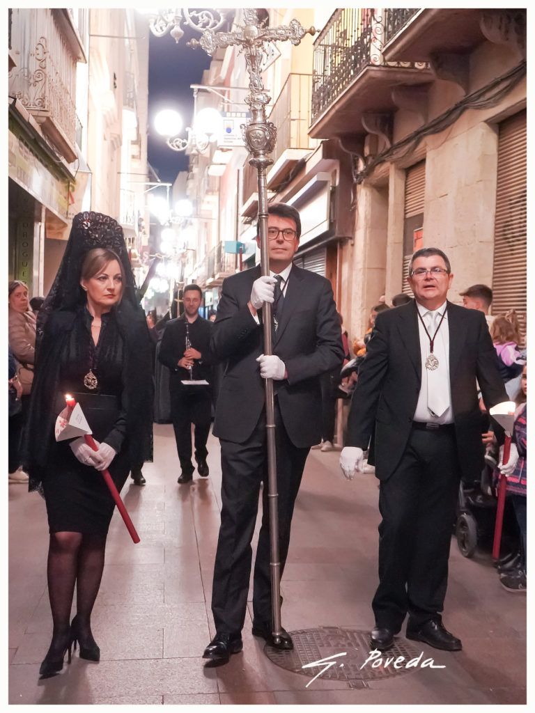 El pasado miércoles santo procesionó la Cofradía de Nuestra Señora de Los Dolores en su Soledad y en ella la Tripleta Portadora de la Cruz Procesional que desde hace unos años tiene el honor de ser portada por el Ilustre Colegio de Abogados de Elche, representado este año por los letrados/a Dª Cristina Birlanga Palao, D. Elicio Gómez Sánchez y D. José Antonio Alarcón Gómez.